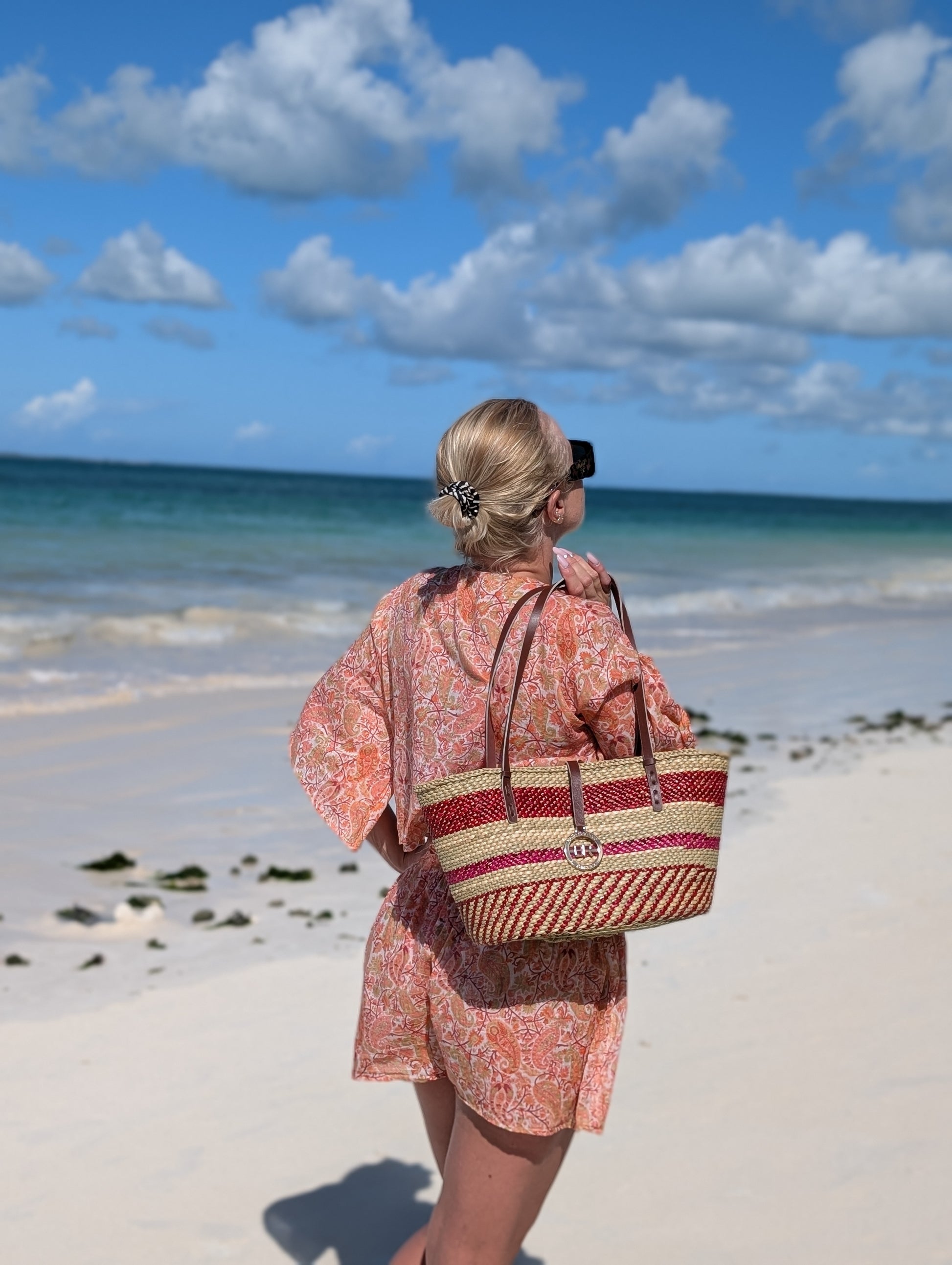 Enhance your style with a unique bag that blends the natural beauty of Milulu grass with the elegance of premium leather details. Each bag is meticulously handmade by skilled artisans using the finest materials. Combined with high-quality leather straps, the bag offers exceptional durability and a luxurious look. Dyed with natural pigments, each piece boasts one-of-a-kind colors that make it truly unique.