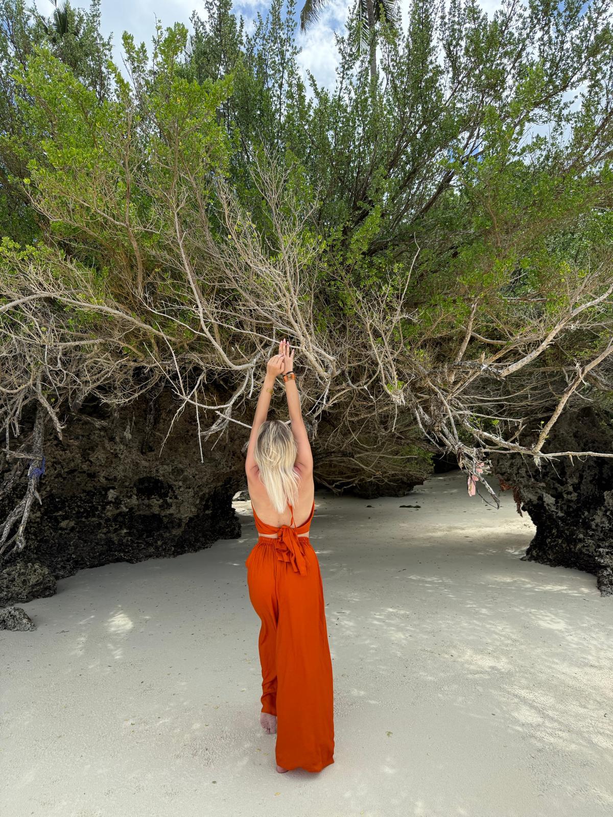 Top: Wrap-style top that ties at the neck or back, offering an adjustable fit that flatters the figure and stays breezy and secure.
